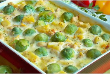 Auflauf mit Rosenkohl, Kartoffeln und Sahne
