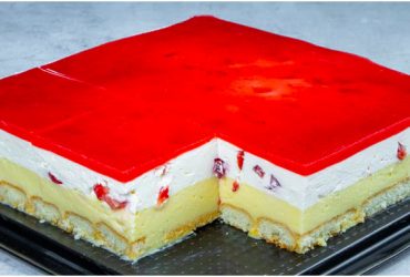 Kuchen ohne Backen -Erdbeer-Puddingcreme Schnitten