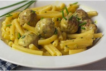 Pasta mit Hackbällchen in Senfsauce