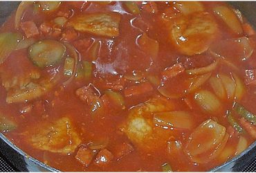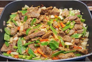Chinesisches Rindfleisch mit Zwiebeln und Paprika