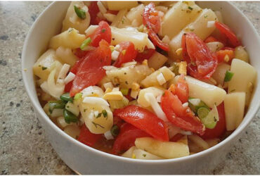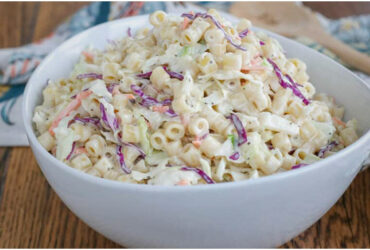 Krautsalat auf Nudelsalat mit Mayonnaise-Dressing
