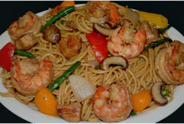 Chow mein mit Garnelen und Hähnchen – Chinesisches Essen