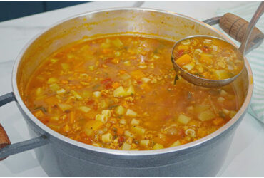 Schnelle Gemüsesuppe mit Reis und Hackfleisch