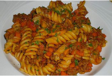 Hackfleisch – Gemüsenudeln in würziger Tomaten – Currysauce