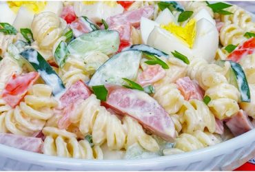Dieser cremige Nudelsalat ist super lecker und sehr einfach mit wenigen Zutaten zuzubereiten.