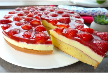 Dieser mega-zarte Erdbeerkuchen zergeht auf der Zunge! Sehr cremig, sehr lecker