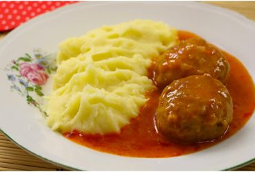 Our favorite lunch – meatballs with tomato sauce and mashed potatoes