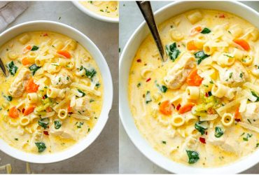 Cremige Hühnersuppe mit Nudeln und Spinat