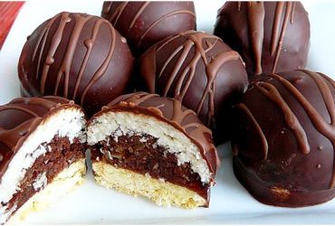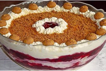 Schichtdessert mit Mascarpone, Windbeuteln und Keksen