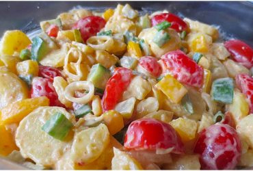 Pikanter Kartoffelsalat mit viel knackigem Gemüse