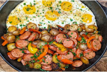 Topf mit Wurst, Gemüse und Ei