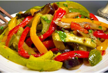 Gegartes gemüse in süß-saurer soße aus dem ofen