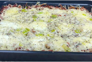 Das Hackfleisch einfach über die Kartoffeln geben