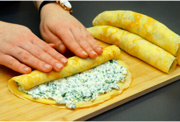 Spinatpfannkuchen mit Frischkäsefüllung und Béchamelsauce
