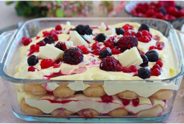 Tiramisu mit roten Früchten und weißer Schokolade