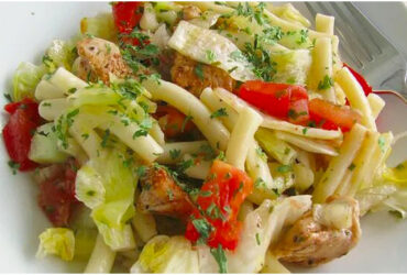 Nudelsalat mit Hähnchen, Tomaten und Gurken