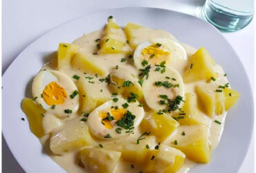 Senfeier mit Sahnesoße und Schnittlauch